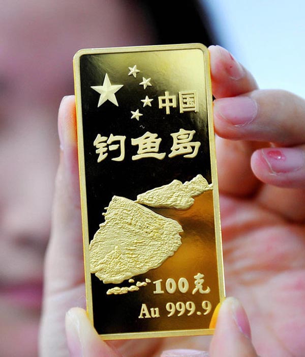 國內(nèi)首款黃金金條以釣魚島命名的黃金制品、“中國釣魚島金條”入市面世,最重的100克 最輕的只有1克。