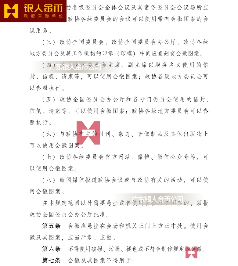 (五)政協(xié)全國(guó)委員會(huì)辦公室和各專門委員會(huì)使用的信封、信箋、請(qǐng)柬等,可以使用會(huì)徽?qǐng)D案;政協(xié)各級(jí)地方委員會(huì)可以參照?qǐng)?zhí)行。
