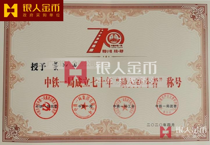 國有企業(yè)中鐵一局建局70周年紀(jì)念章最美奮斗者獎(jiǎng)?wù)露ㄖ疲▓D)