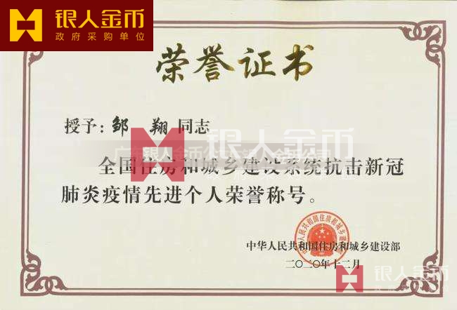 中華人民共和國住房和城鄉(xiāng)建設部抗擊疫情先進集體個人獎牌證書(圖)