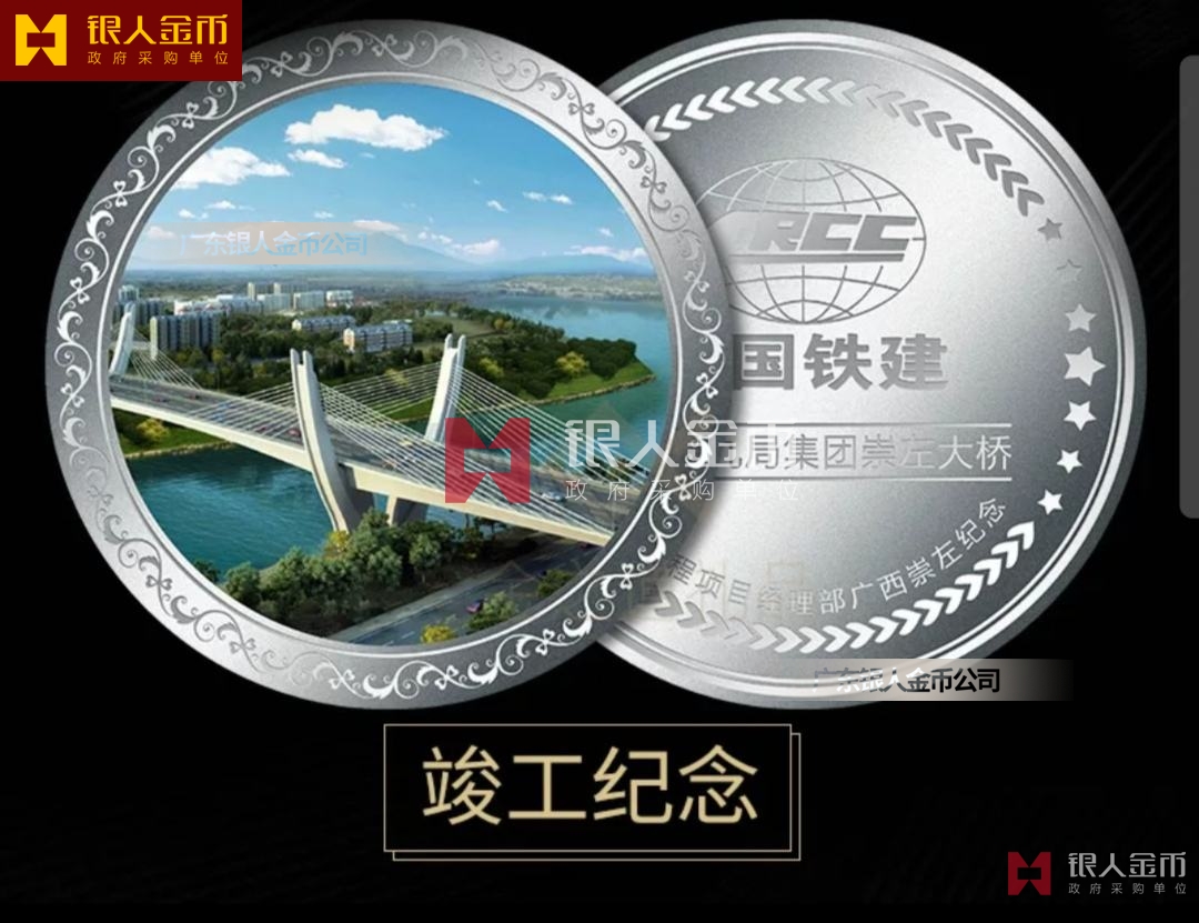 中國鐵建九局廣西崇左大橋項(xiàng)目紀(jì)念章定制和工程施工竣工地鐵通車紀(jì)念章(圖)