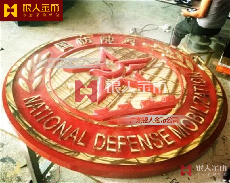 廣州銀人徽章廠有限公司-是廣東省一家專業(yè)以研發(fā).設(shè)計(jì).鑄造.生產(chǎn)銷售一體的大型企業(yè).徽章嚴(yán)格按國(guó)家標(biāo)準(zhǔn)設(shè)計(jì)與制作.以優(yōu)質(zhì)的ZL102鑄造鋁合金、銅、合金、鋅合金、合金、鋅等為材料.經(jīng)高溫.浸透壓延鑄制造技術(shù),采用高級(jí)汽車烤漆房.高光澤靜電勻布式噴烤漆工藝處理,掛徽表面噴涂進(jìn)口透明防腐蝕漆加以保護(hù).該產(chǎn)品具有重量輕,牢固強(qiáng).拒風(fēng)雨.抗日曬.色彩鮮艷.保持不褪色特點(diǎn).掛徽美觀莊重.雄偉莊嚴(yán).是政府大樓,機(jī)關(guān)單位.企事業(yè)學(xué)校等必備懸掛標(biāo)志。
