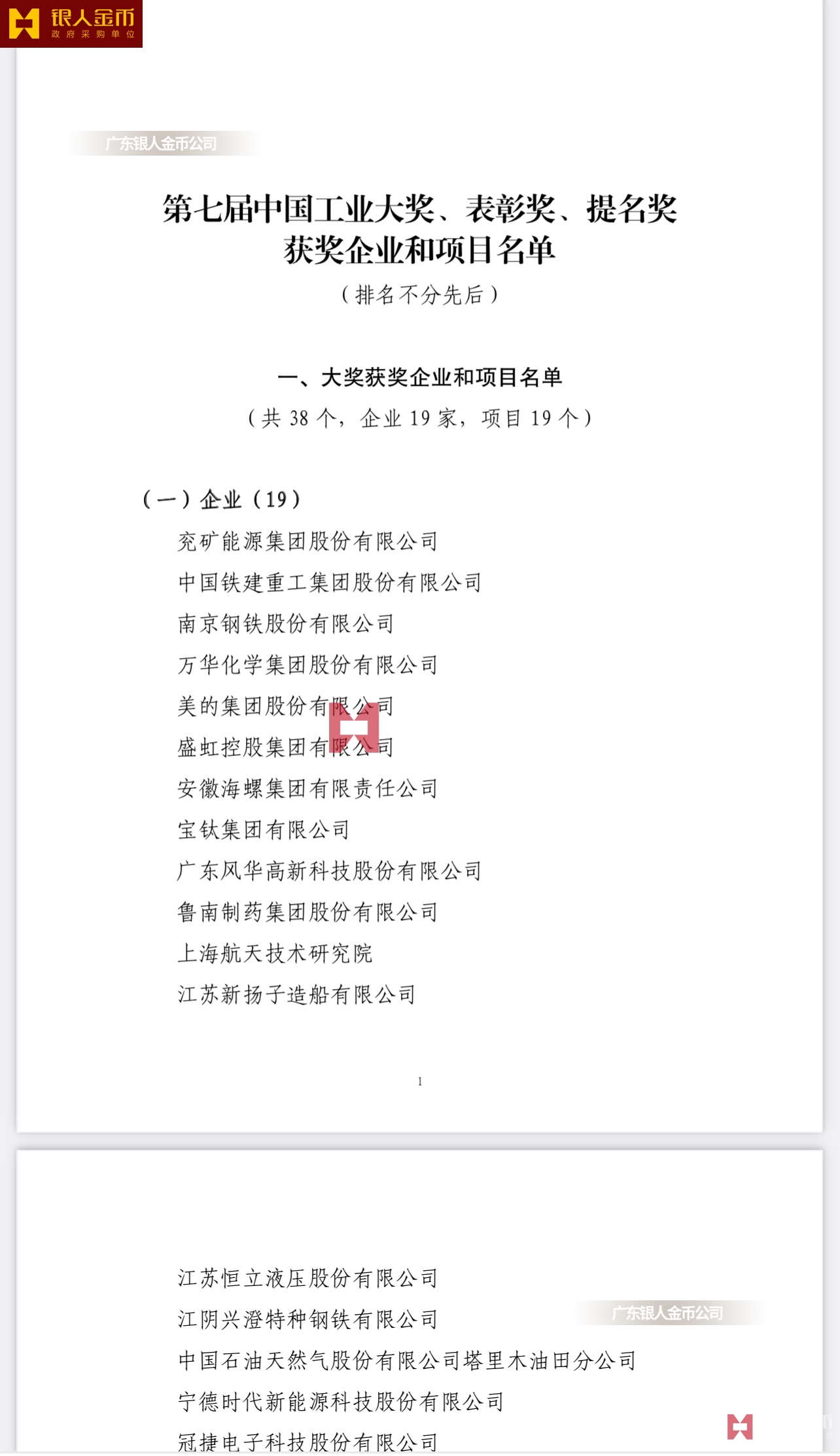 第七屆中國工業(yè)大獎獲獎名單