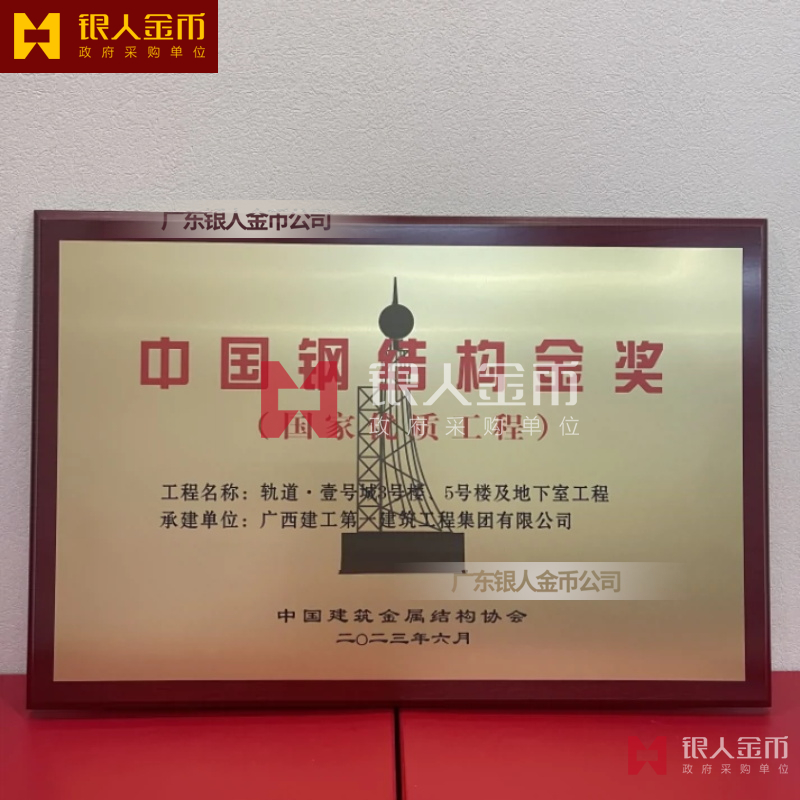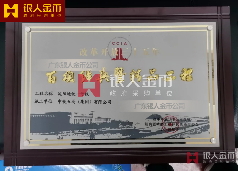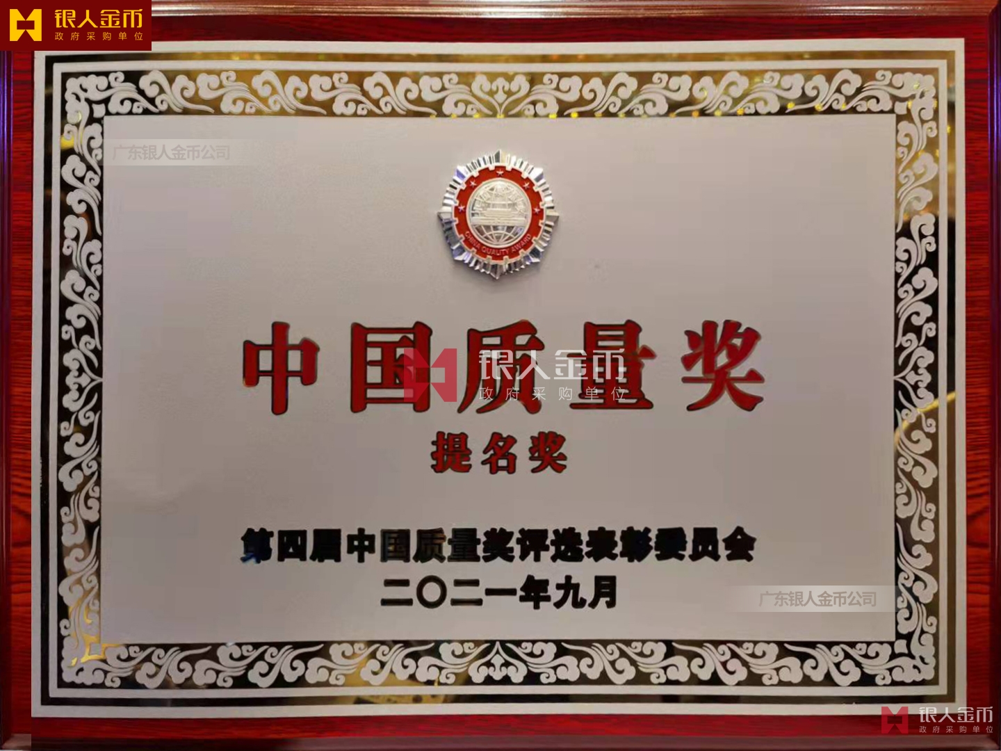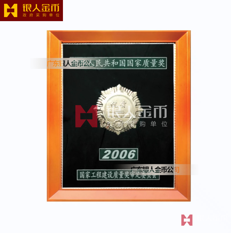 中國質(zhì)量獎獎?wù)陋勁篇劚白C書(圖)【廣州銀人獎?wù)伦C章廠有限公司】