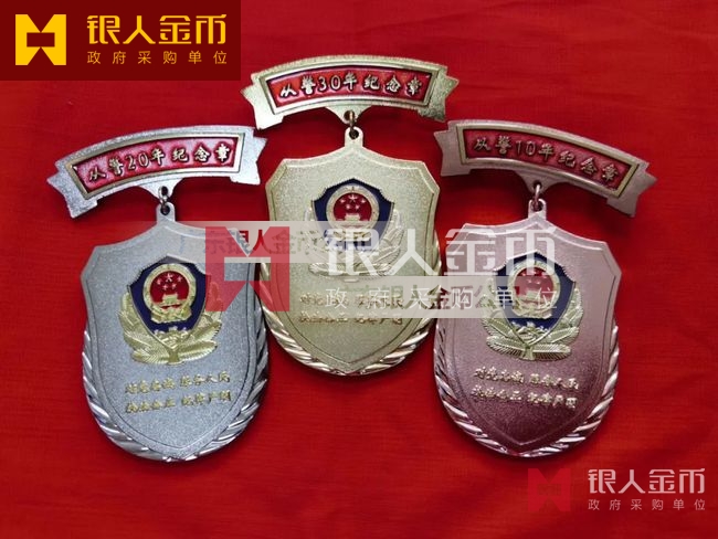 公安從警10年銅質(zhì)紀(jì)念章獎(jiǎng)?wù)聞渍隆⒚窬瘡木?0年銀質(zhì)紀(jì)念章紀(jì)念徽章證章、警察從警30年金質(zhì)紀(jì)念章獎(jiǎng)牌榮譽(yù)章胸章