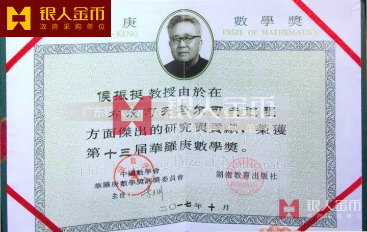 華羅庚數(shù)學(xué)獎金牌、獎牌、證書