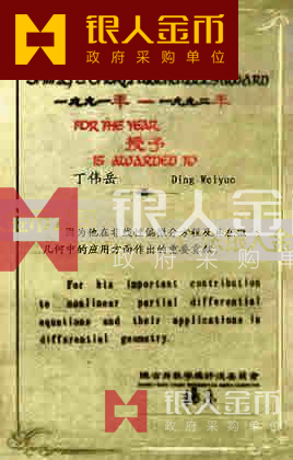 陳省身數(shù)學(xué)獎金牌、獎牌、證書