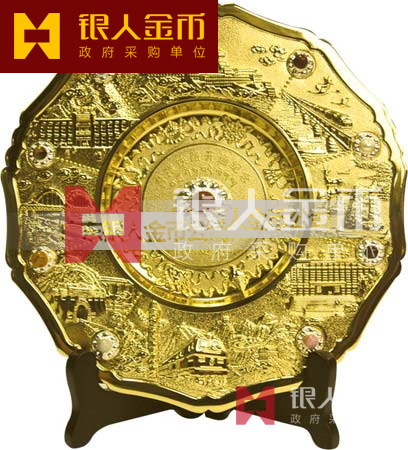 “紀念青藏鐵路開通蓮花寶石浮雕金盤”,限量9999枚,該盤的設計新穎,浮雕工藝細致精美,以華表、長城、布達拉宮等浮雕,體現(xiàn)偉大中華的時代風貌和濃郁的民族風情。金盤采用先進工藝開模鑄造,鍍金、銀,并鑲嵌9顆天然珠寶,并由中國地質(zhì)學會寶石委員會權威鑒定,具有較高的文化、藝術品位和收藏價值。