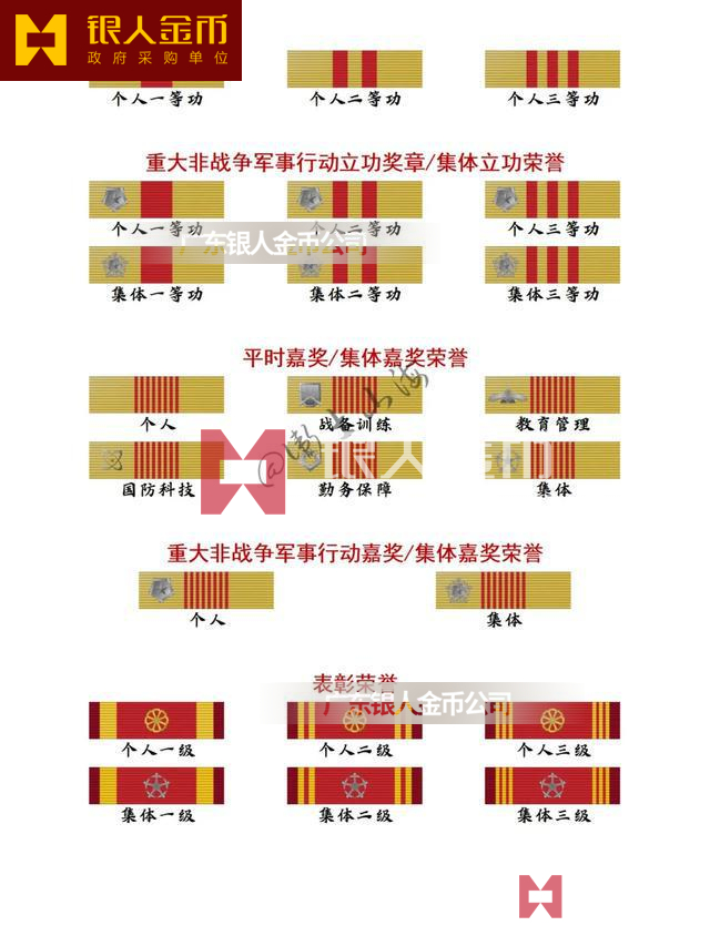 個人一等功(戰(zhàn)備訓練)、個人一等功(教育管理)、個人一等功(國防科技)、個人一等功(勤務保障)