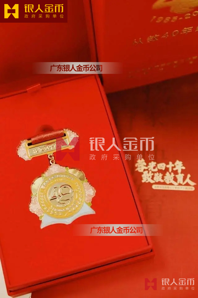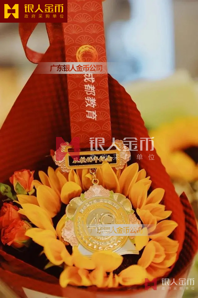 這枚珍貴的紀(jì)念章為廣東銀人金幣公司-廣州恒帆徽章廠制造;選取金色、黃色、粉色、藍(lán)色、綠色五種和諧明快的色彩;設(shè)計(jì)以成都市市花、市樹為靈感來源,將芙蓉花和銀杏葉環(huán)繞在紀(jì)念章周圍,中間圖案以數(shù)字“40”為主體,數(shù)字旁的綠葉代表著教師甘為人梯的高尚精神,下方展開的書籍代表著教書育人的職業(yè)生涯,麥穗則代表著成都教育行業(yè)的繁榮以及城市對教師的祝福。