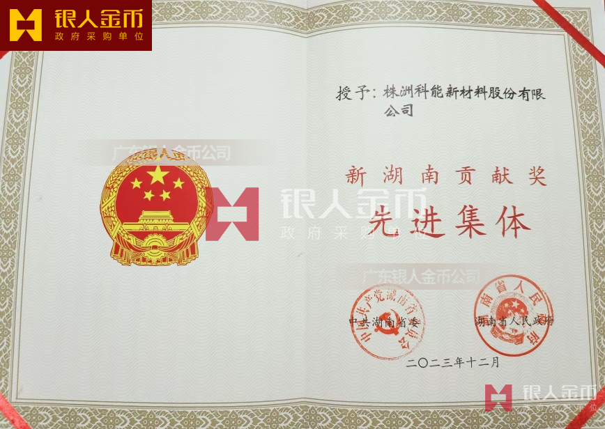 中共湖南省委、湖南省人民政府——新湖南貢獻(xiàn)獎(jiǎng)先進(jìn)集體證書(榮譽(yù)證書、獎(jiǎng)勵(lì)證書)