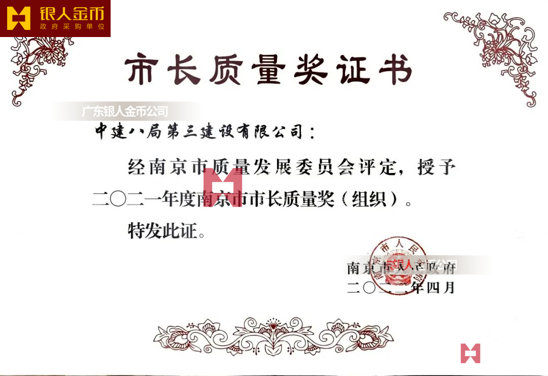 江蘇省南京市人民政府南京市市長質量獎獎牌獎章證書牌匾紀念牌紀念章勛章徽章(圖)