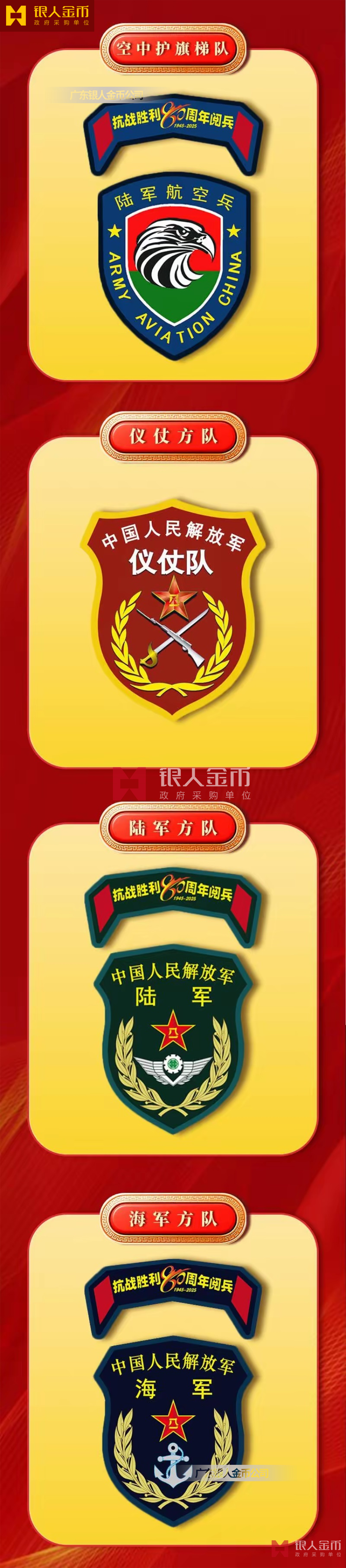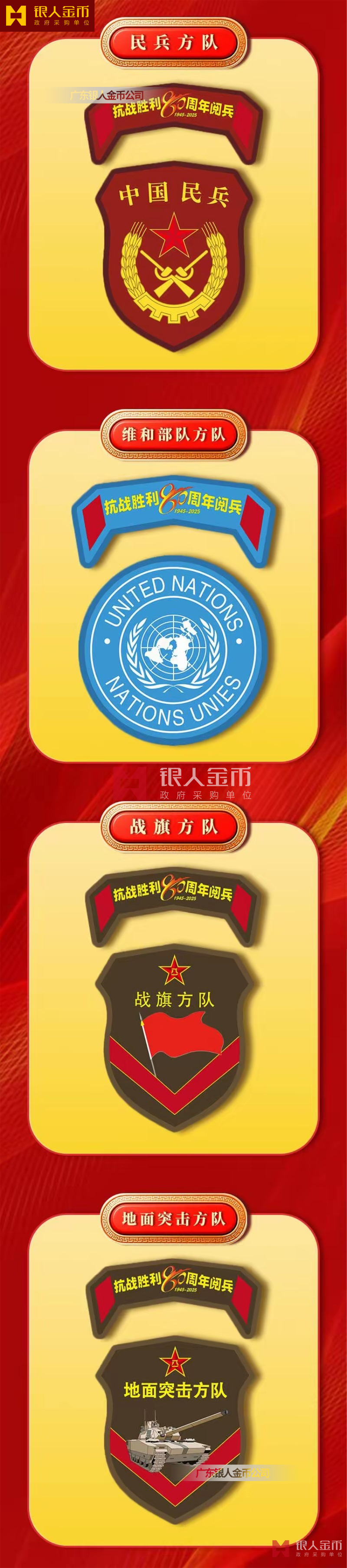 中央軍委海軍陸軍空軍武警部隊(duì)全軍各軍兵種中國人民解放軍九三閱兵臂章(圖)-【廣州徽章廠】
