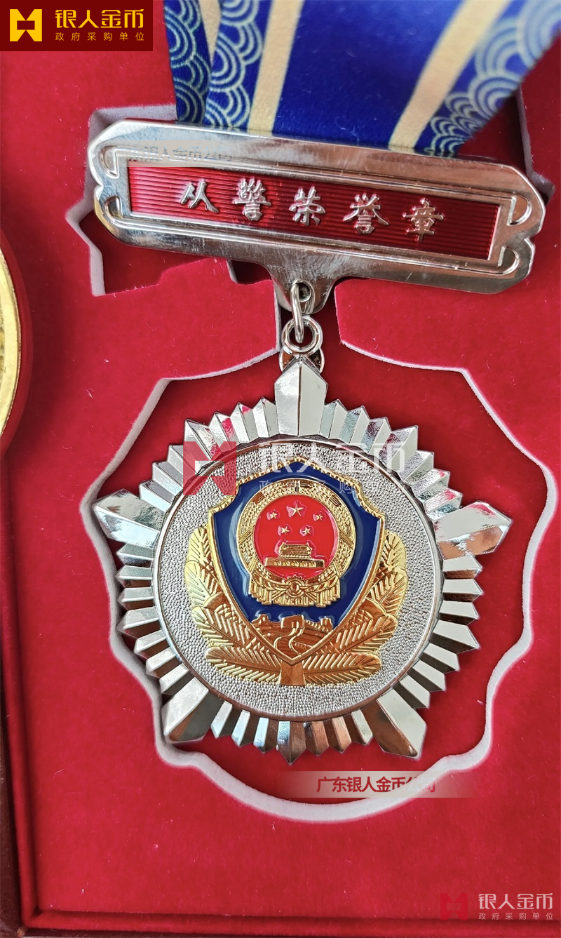 從警紀(jì)念章(公安勛章或警察勛章,也叫人民警察金盾獎(jiǎng)?wù)?/a>或金盾勛章),不僅是一件獎(jiǎng)品,更是一份承載著榮譽(yù)與責(zé)任的象征,它猶如一面鏡子,映射出警察職業(yè)的崇高與莊嚴(yán),也映射出每一位警察內(nèi)心深處的信念與堅(jiān)守。這款從警年限紀(jì)念章以金銀銅三色為主調(diào)分別代表不同入警時(shí)間,象征著警察職業(yè)的莊嚴(yán)與神圣。其造型獨(dú)特,融合了警徽、盾牌與時(shí)間的元素,警徽,代表著警察的身份與榮譽(yù),每一次佩戴,都是對(duì)職責(zé)的堅(jiān)守;盾牌,象征著保護(hù)與守護(hù),是警察們面對(duì)危險(xiǎn)時(shí)無(wú)畏前行的勇氣;而時(shí)間的流轉(zhuǎn),則見(jiàn)證了警察們從青澀到成熟,從熱血到沉穩(wěn)的蛻變。