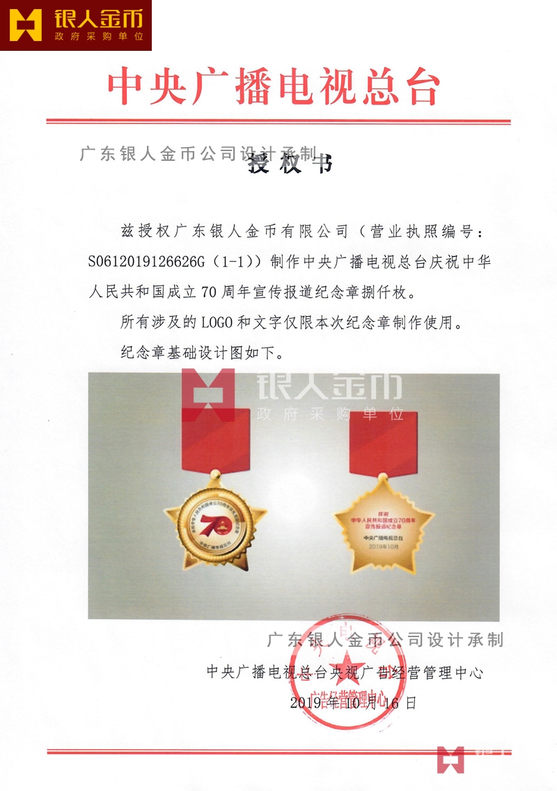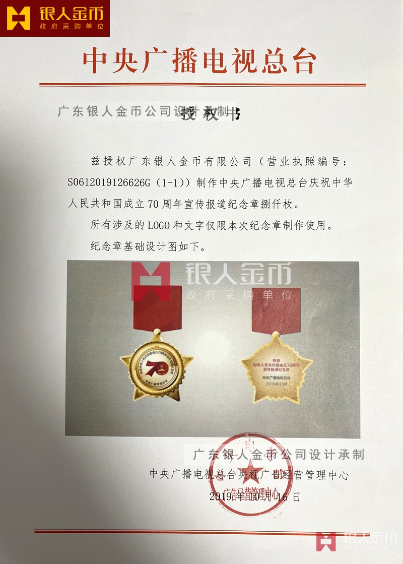中央廣播電視總臺(tái)慶祝中華人民共和國(guó)成立70周年宣傳報(bào)道紀(jì)念章定制
