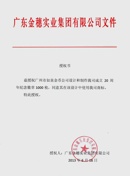 (廣東金穗集團(tuán)成立20周年金質(zhì)紀(jì)念章定做,紀(jì)念徽章定制)