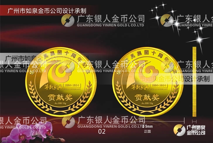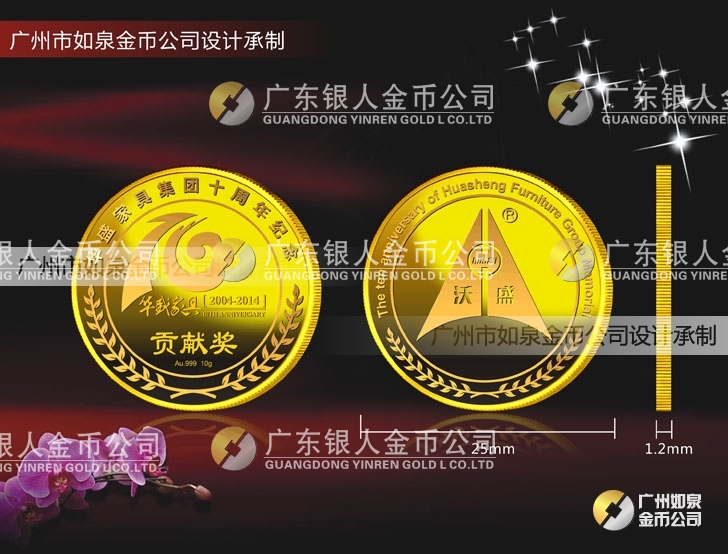 中山華盛公司年會(huì)表彰獎(jiǎng)勵(lì)在崗三年、服務(wù)滿(mǎn)五年、十年優(yōu)秀員工貢獻(xiàn)獎(jiǎng)定做純金金牌、定制純金獎(jiǎng)牌 制作千足金金幣