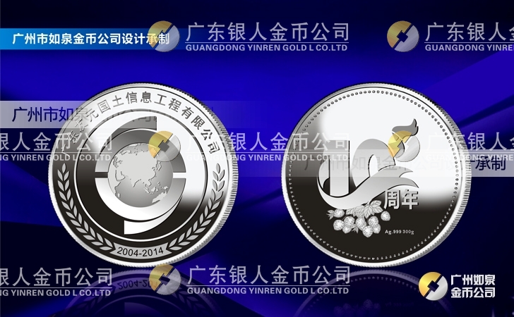 2014年5月定制 廣東友元國土信息工程公司十周年慶典白銀紀(jì)念幣