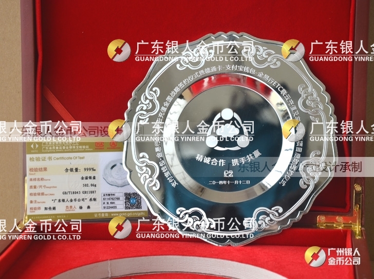 訂做深圳金溢科技公司純金銀紀(jì)念金銀盤(pán)訂做