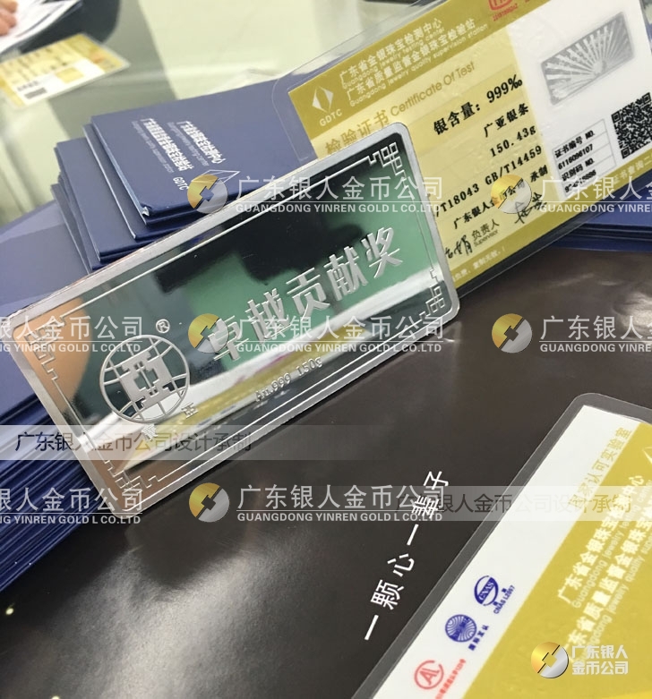 廣東銀人金幣公司承接客戶個(gè)性化定制的金銀幣、金銀章、金銀條、金銀牌、金銀盤均由國家質(zhì)監(jiān)部門、嚴(yán)格檢測、權(quán)威鑒定: