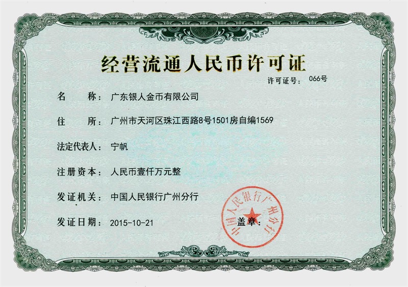 持有央行頒發(fā)的《經(jīng)營(yíng)流通人民許可證》。