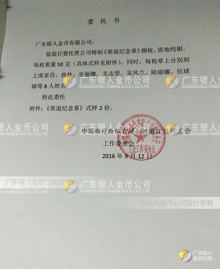 廣東銀人金幣公司,是集紀(jì)念章、獎(jiǎng)?wù)?、勛章設(shè)計(jì)、研發(fā)、定制并服務(wù)于榮譽(yù)稱號(hào)全表彰獎(jiǎng)勵(lì)周期管理,致力于證章文化產(chǎn)業(yè)發(fā)展和徽章信息化研究的大型生產(chǎn)制造獨(dú)資企業(yè),是國(guó)家級(jí)紀(jì)念章、獎(jiǎng)?wù)碌脑O(shè)計(jì)者(外包)、制造者(定點(diǎn))和維護(hù)者(認(rèn)可),金銀章綜合解決方案的提供者。在全國(guó)獎(jiǎng)?wù)聞渍骂I(lǐng)域,廣東銀人金幣公司擁有專業(yè)的勛章產(chǎn)業(yè)規(guī)模、齊全的證章門(mén)類和完整的紀(jì)念章產(chǎn)業(yè)鏈條。