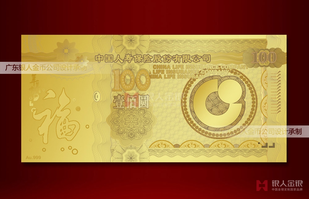 廈門金鈔定制_中國人壽保險公司紀(jì)念金鈔定制_金鈔銀鈔定制_金銀禮品定制
