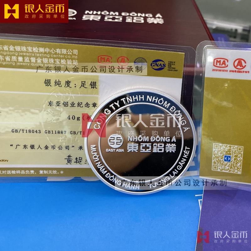 東亞鋁業(yè)集團在創(chuàng)業(yè)十年后恰逢公司成立10周年紀念慶典、委托定制金銀紀念幣1200枚。