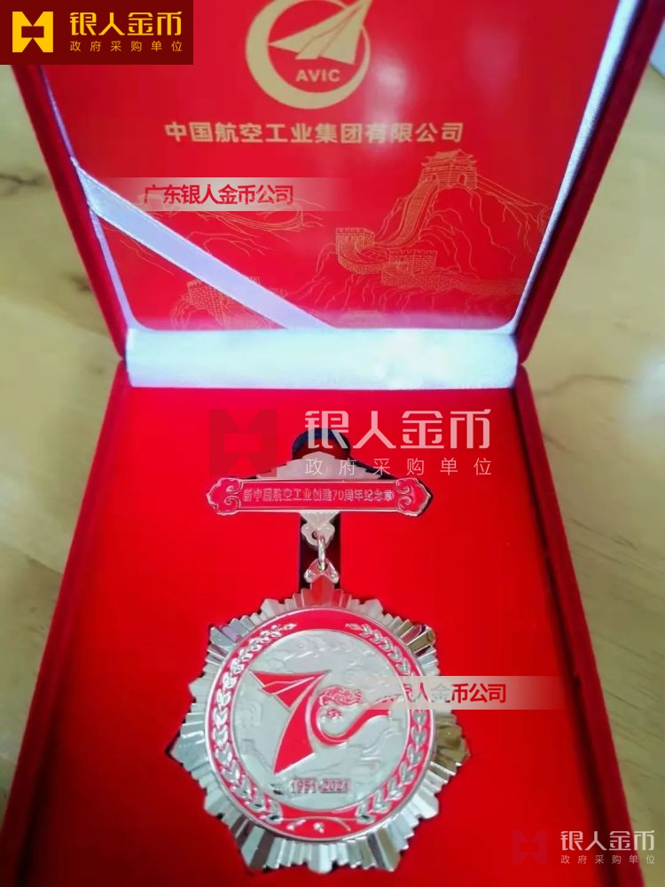 為慶祝黨領(lǐng)導(dǎo)新中國航空事業(yè)發(fā)展70周年,航空報(bào)國、航空強(qiáng)國。集團(tuán)公司為全體在職人員頒發(fā)航空報(bào)國、航空強(qiáng)國企業(yè)文化下的中航工業(yè)70周年紀(jì)念章、為離休人員頒發(fā)、退休人員頒發(fā)定制了“新中國航空工業(yè)創(chuàng)建70周年”紀(jì)念章。