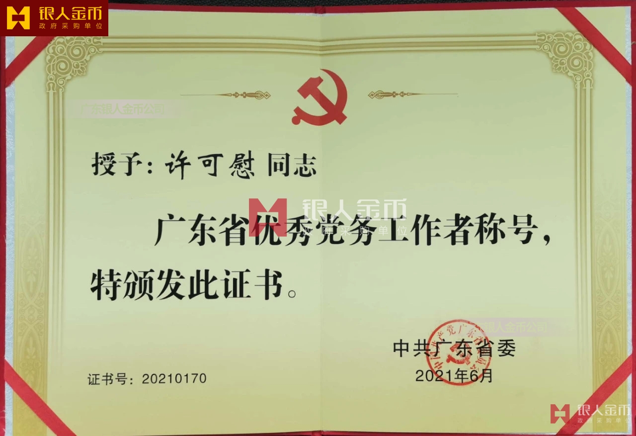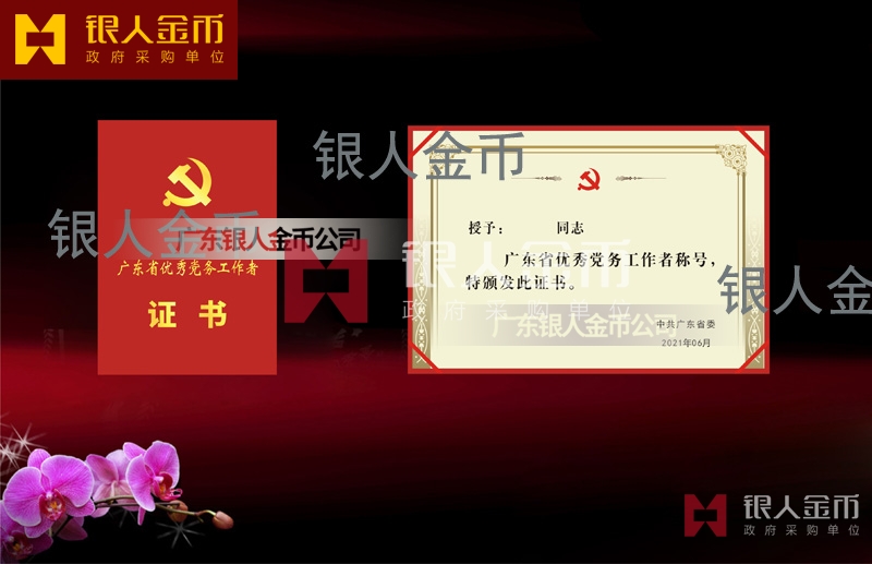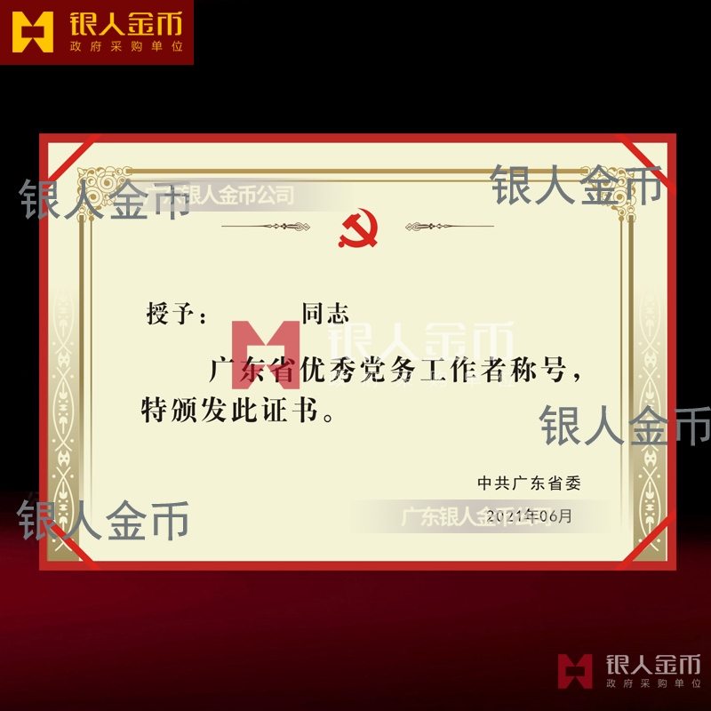 中共廣東省委組織部優(yōu)秀黨務(wù)工作者榮譽證書_全省優(yōu)秀黨務(wù)工作者獎勵證書_廣東省優(yōu)秀黨務(wù)工作者榮譽稱號榮譽獲獎證書兩優(yōu)一先獎牌獎?wù)伦C書
