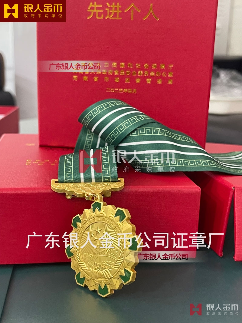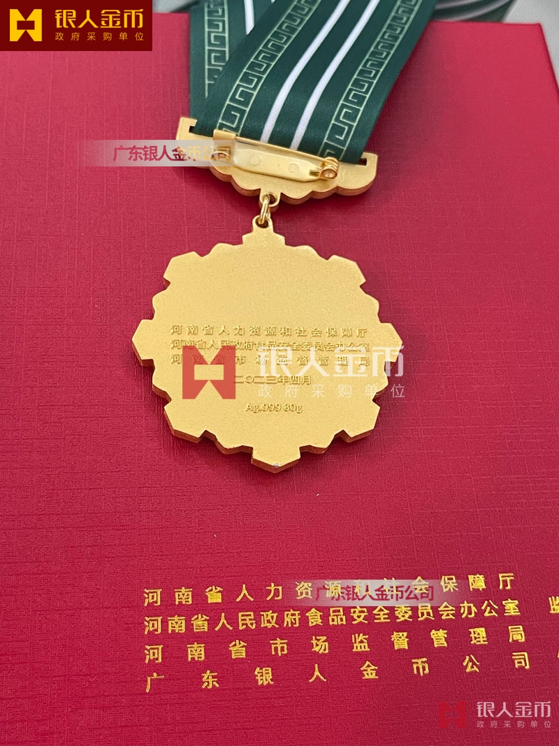 河南省政府食品安全工作先進(jìn)個人獎章定制_表彰獎勵勛章定制_工商市場監(jiān)管局單位獎牌獎?wù)露ㄖ?/span>_市場監(jiān)督管理局證章定制定做制作